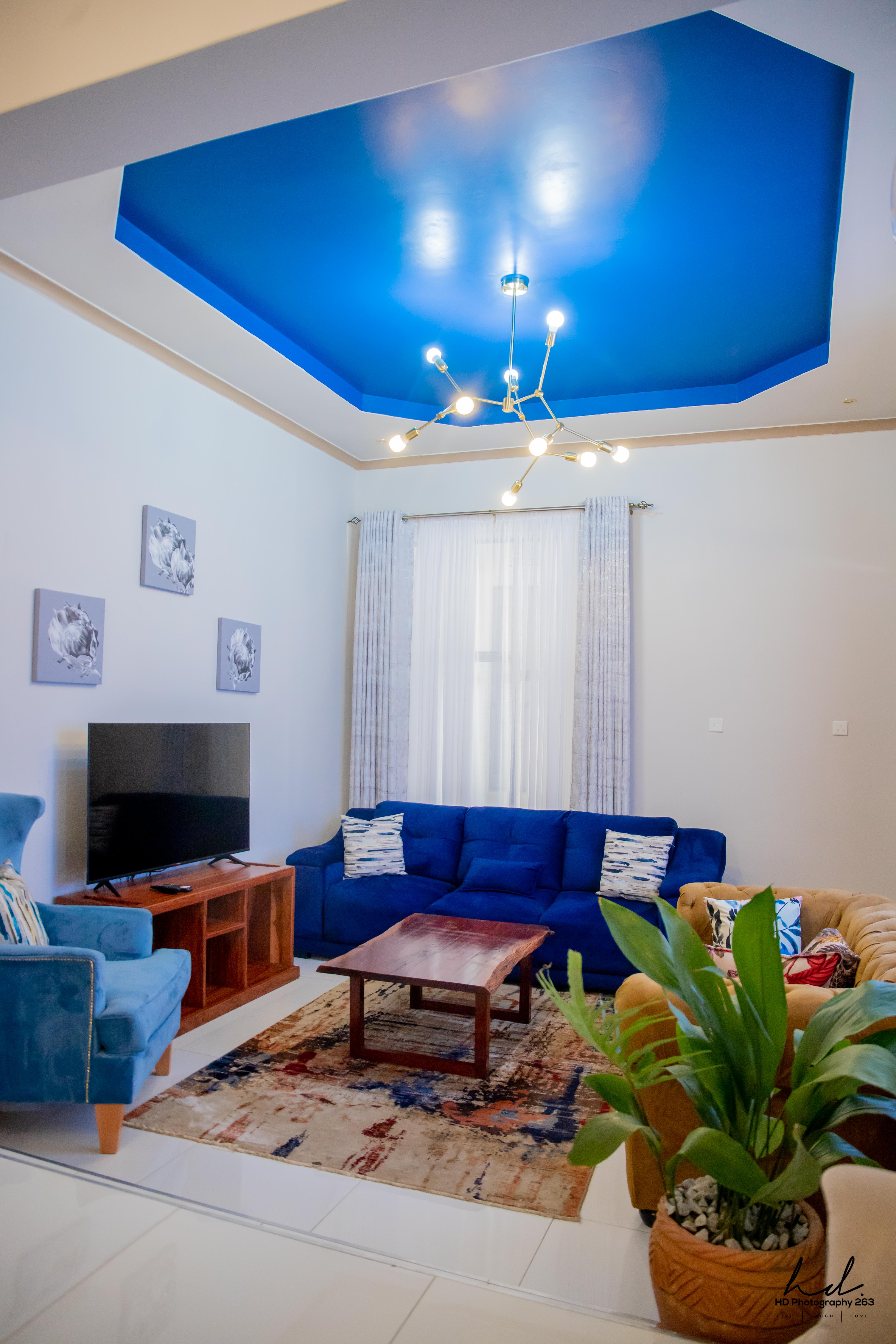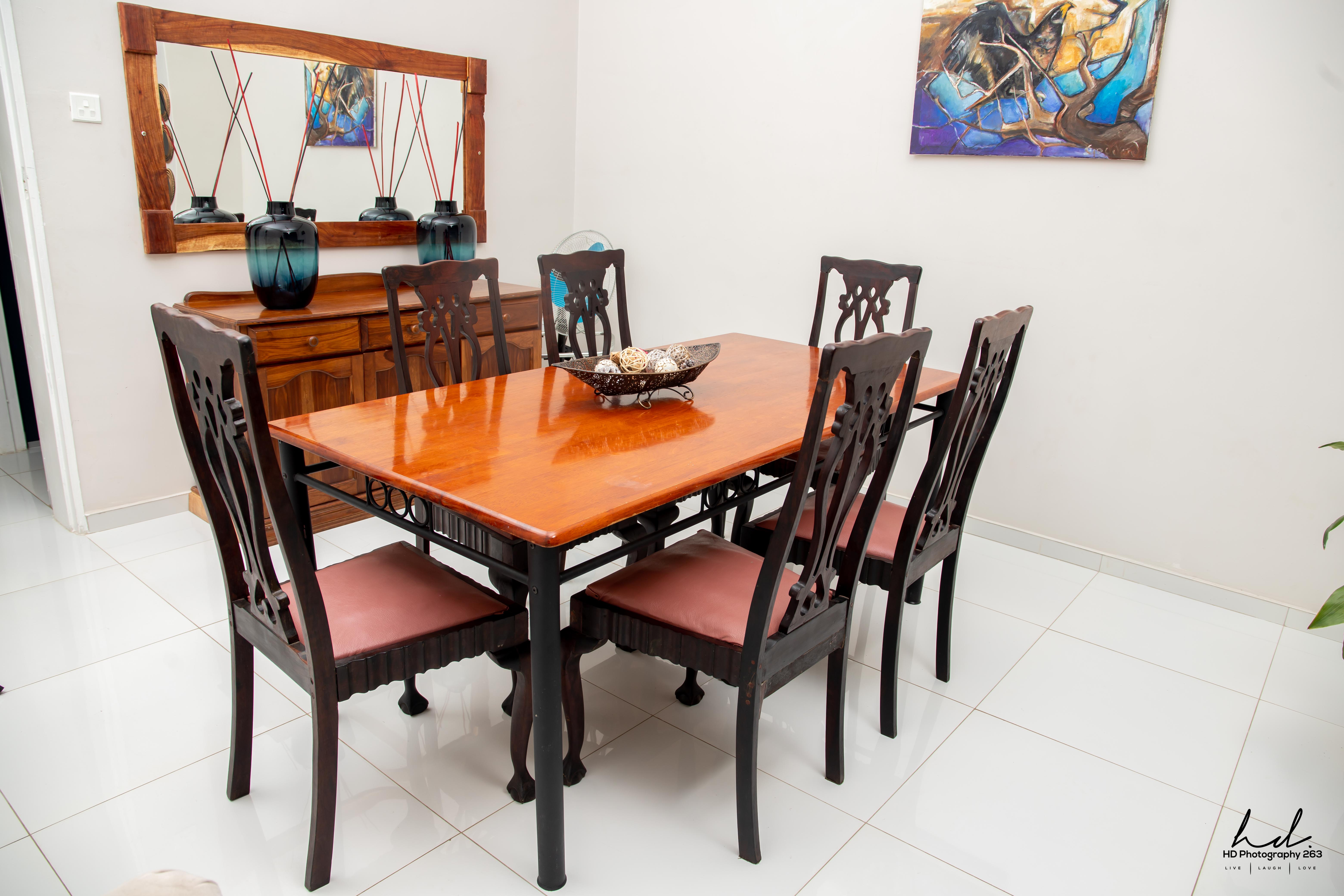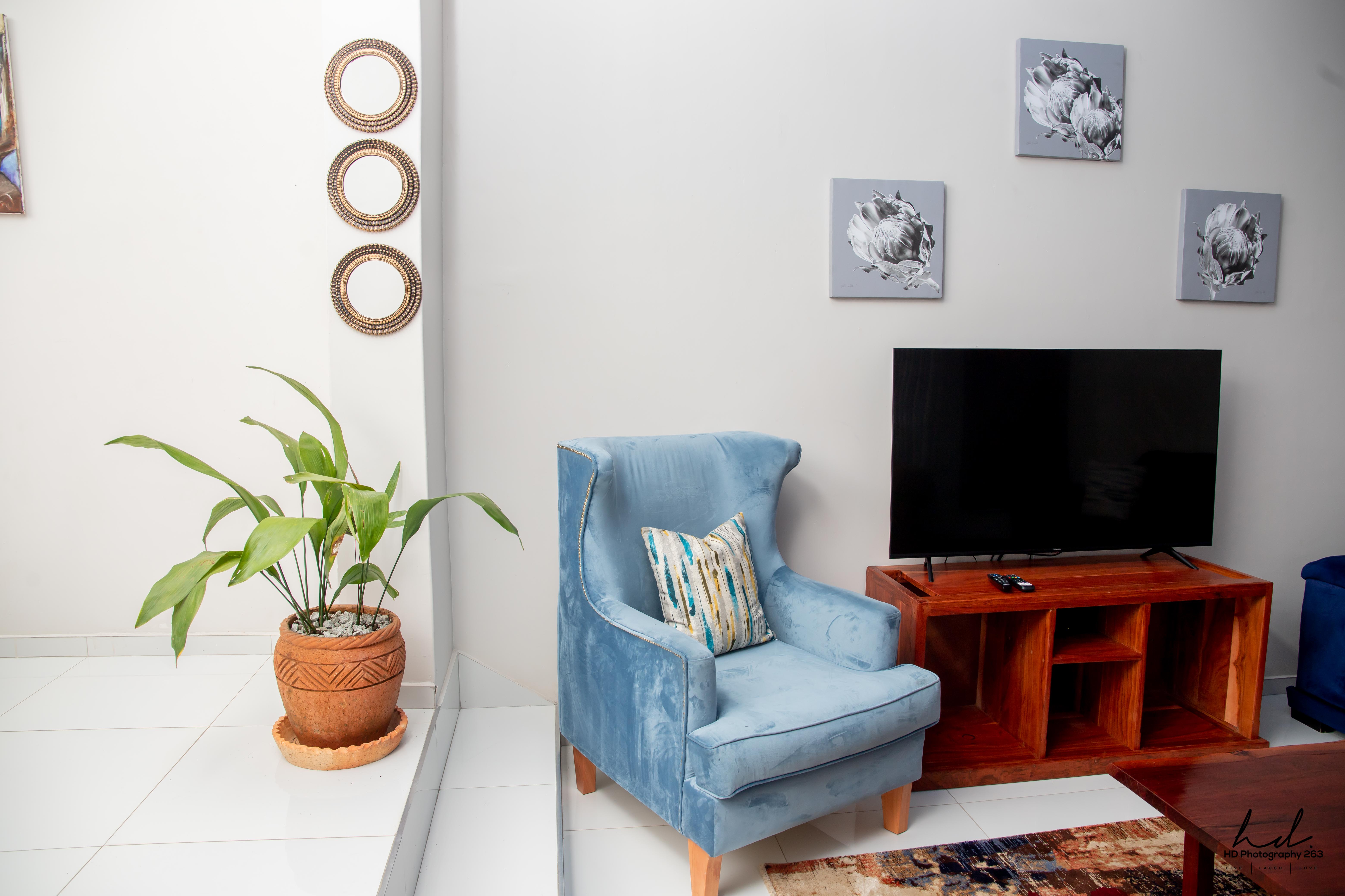 This apartment comes with three bedrooms. The first one is the master bedroom with a King Bed, Air Conditioning, Smart TV (DSTV and Netflix included), and ensuite bathroom. The second one is a double room with a Queen Bed. The third bedroom is twin-sharing and comes fully equipped with two single beds.